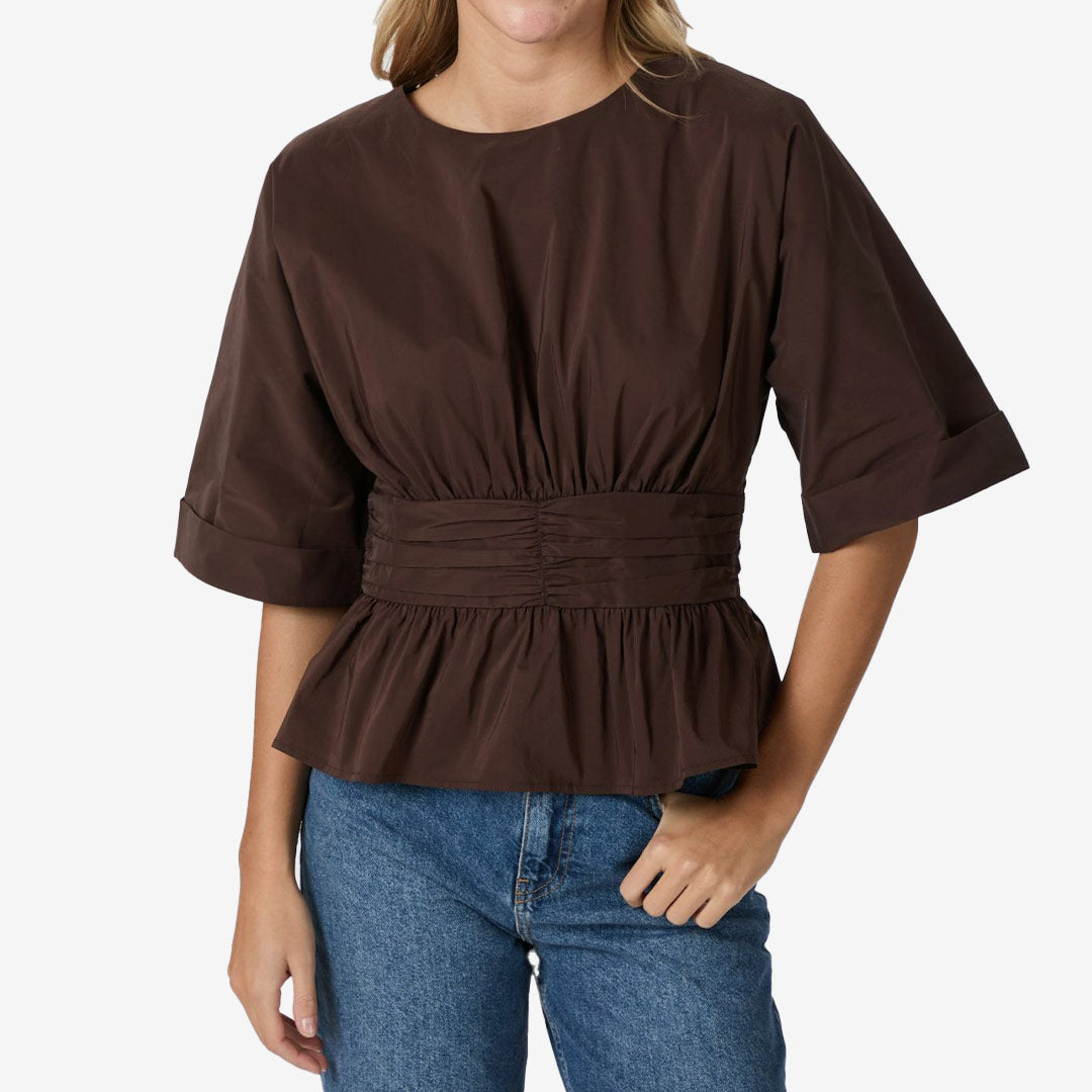 Den bruna nyansen i Chocolate Brown ger ett elegant och tidlöst uttryck, perfekt både till jobbet och mer dressade tillfällen. Den klassiska silhuetten gör blusen enkel att matcha med allt från jeans till kostymbyxor.