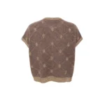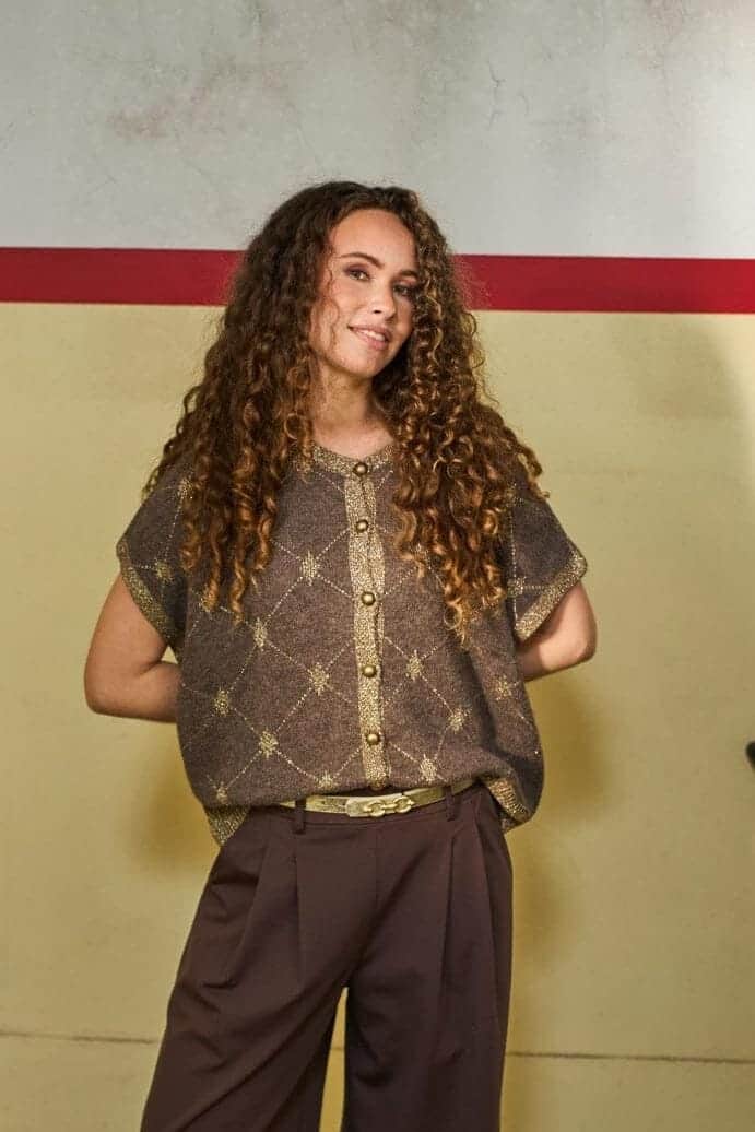 Stickad väst från Black Colour i taupe med diagonala linjer och diamantmönster. Vesten har en lös passform med korta ärmar och knappstängning fram. Läs mer