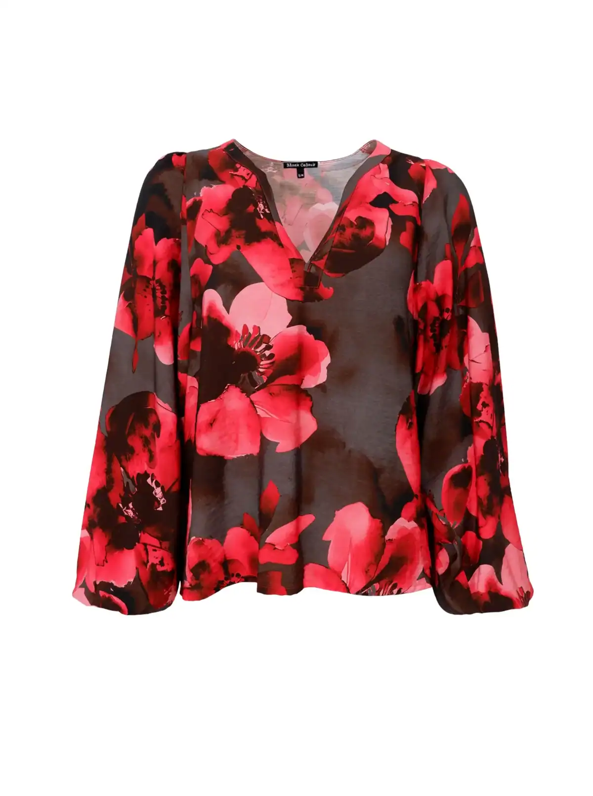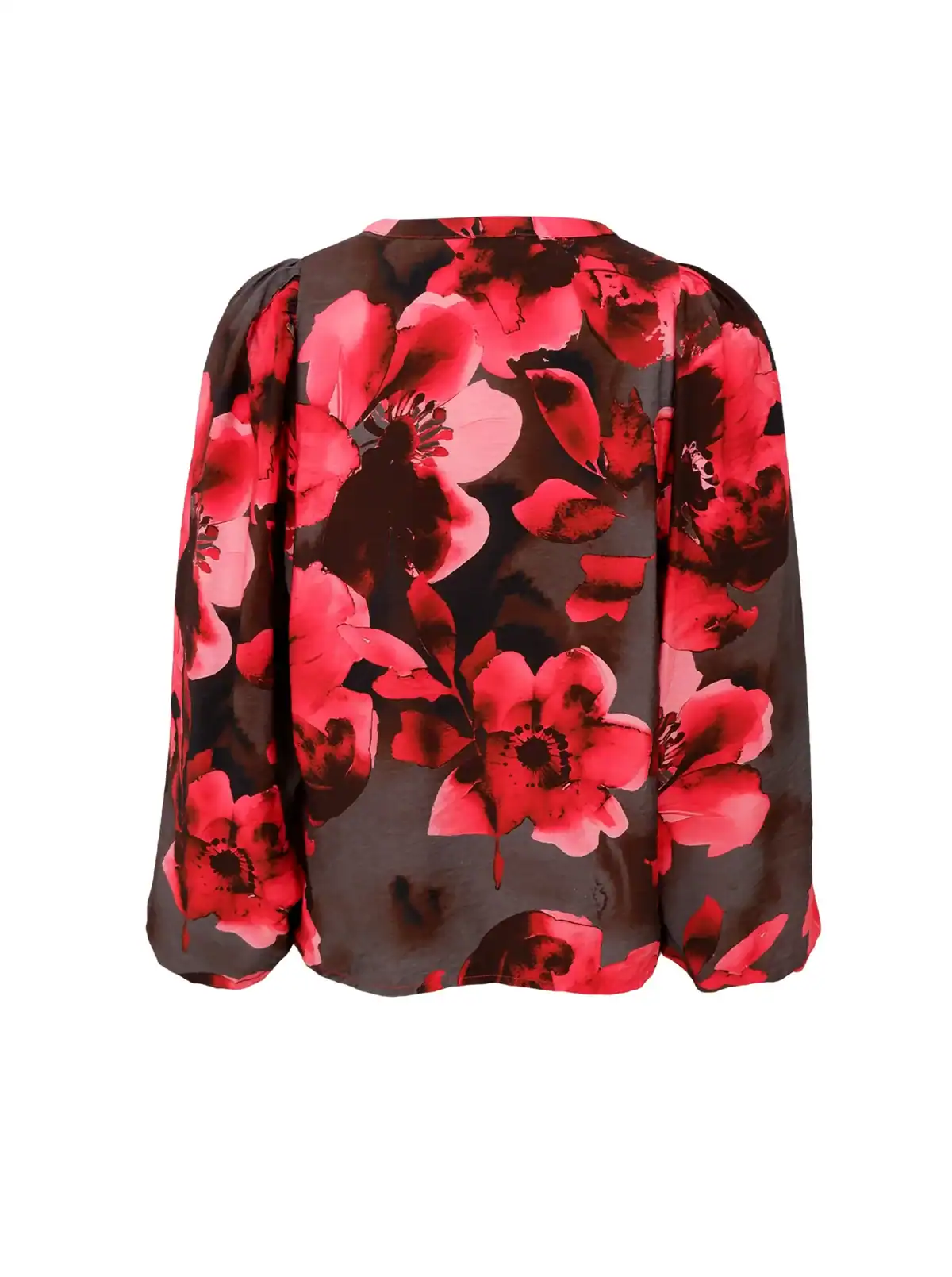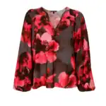 Feminin blus med vackert blommönster, V-ringning och långa, lätt löst sittande ärmar. Blusen har ett elegant fall och en luftig passform som gör den bekväm att bära. Läs mer