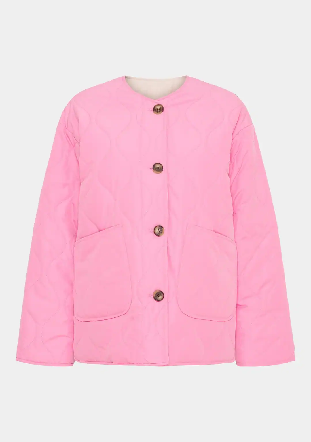 Diddi Reversible Jacket är en praktisk och stilren jacka som ger dig två utseenden i en. Jackan har en lätt avslappnad passform, quiltad struktur och stora påsydda fickor framtill. Rund halsringning och knäppning ger en enkel och modern look, medan den vändbara funktionen gör det enkelt att ändra look efter behov. Tillverkad i 100% återvunnen polyester, som känns lätt och hållbar – ett medvetet val med fokus på komfort och ansvar.