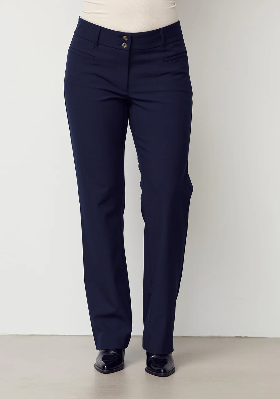 Firenze Straight Pant personifierar tidlös stil. Dessa byxor är designade för att vara ditt förstahandsval år efter år. Tillverkade av en mjuk och stretchig viskosblandning, erbjuder de både komfort och en fantastisk passform. Byxorna har en fast linning med bälteshällor, paspelfickor fram och bak, samt en rak silhuett. Som en extra bonus har Firenze Straight Pant en medelhög midja och extra långa ben. Kombinera byxorna med en matchande kavaj och en randig t-shirt för en komplett look.