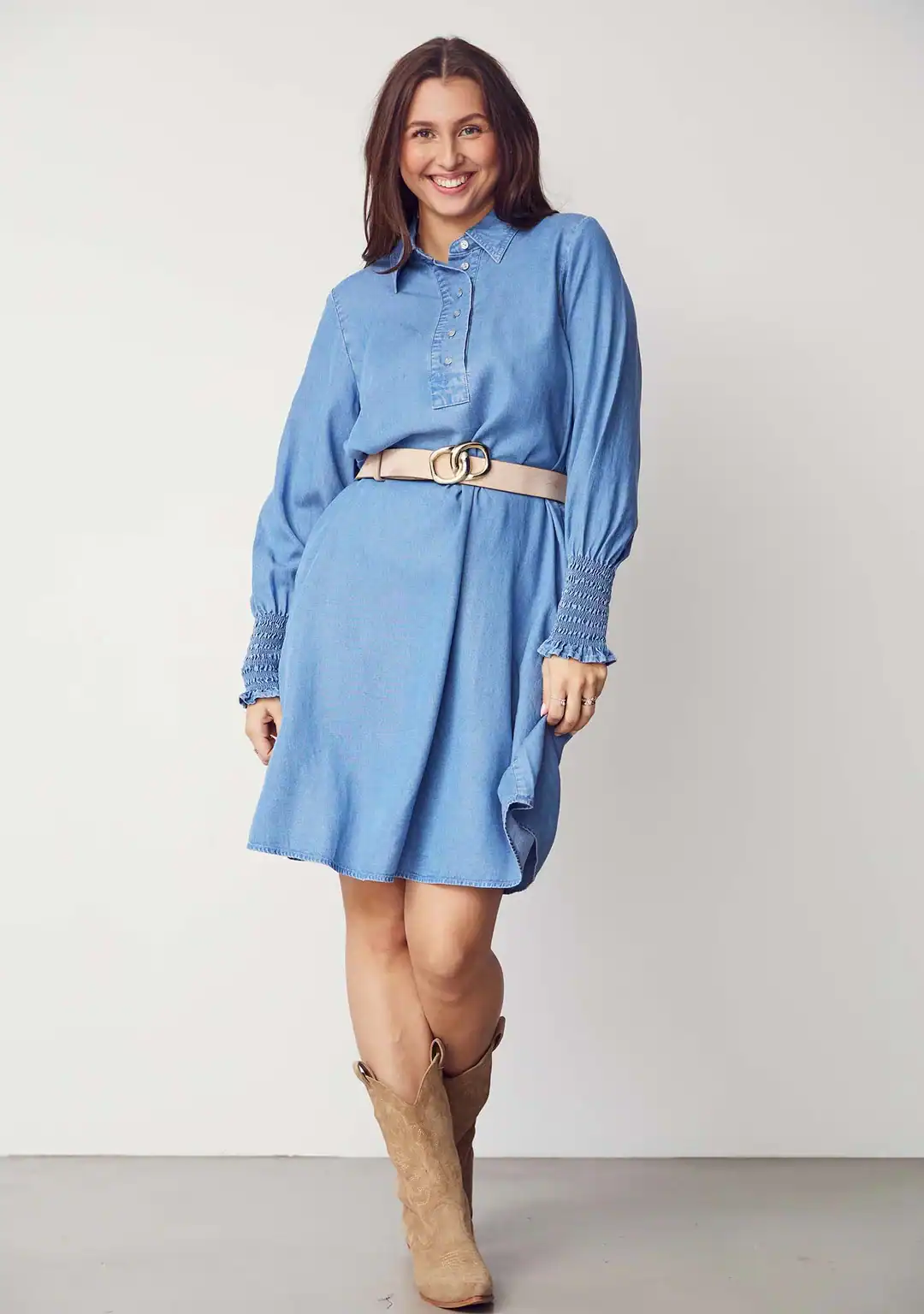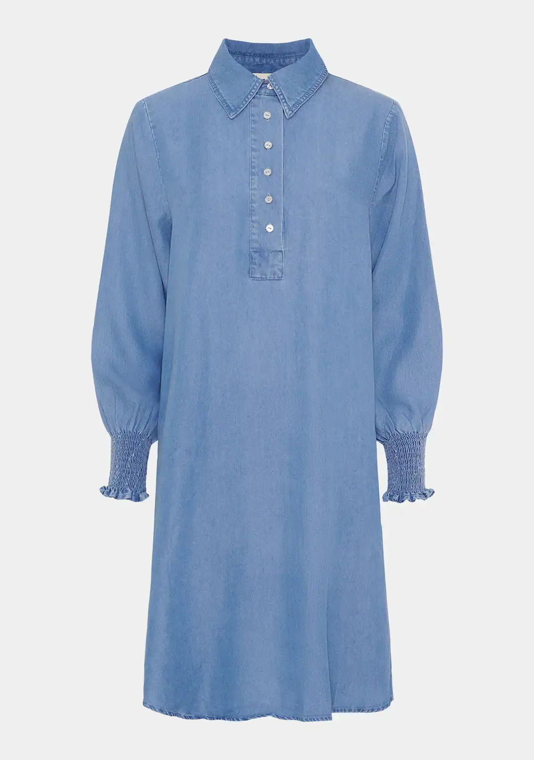 Ganja Dress är en tidlös skjortklänning med feminina detaljer och en bekväm avslappnad passform. Klänningen har en klassisk skjortkrage och en halv knappslå med knappar, vilket betonar den enkla designen. Läs mer