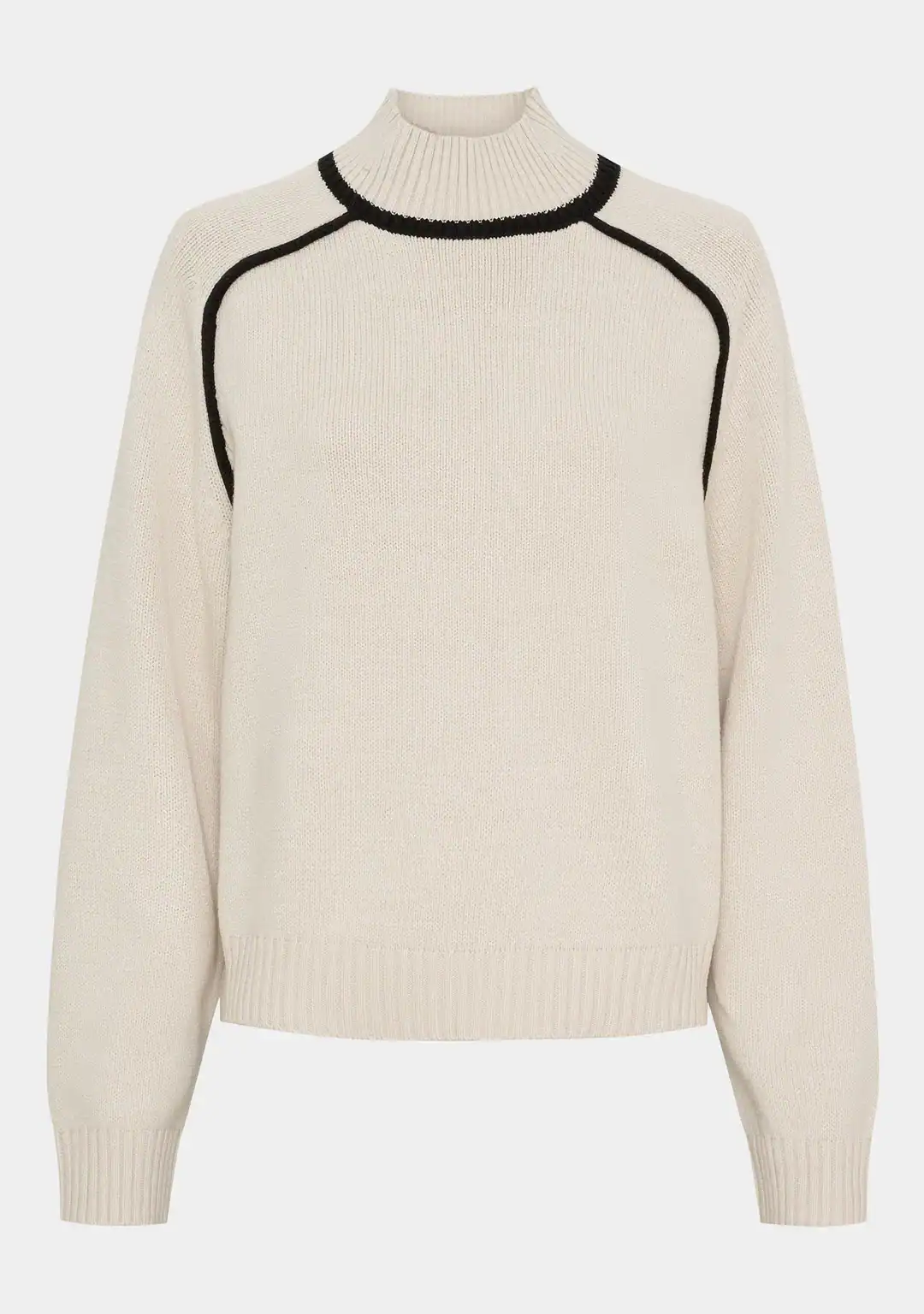 Gwen Contrast Pullover är en modern stickad tröja med en avslappnad men samtidigt sofistikerad look. Den lösa passformen kombineras med en hög hals och långa ärmar, båda med en finstickad avslutning. Läs mer