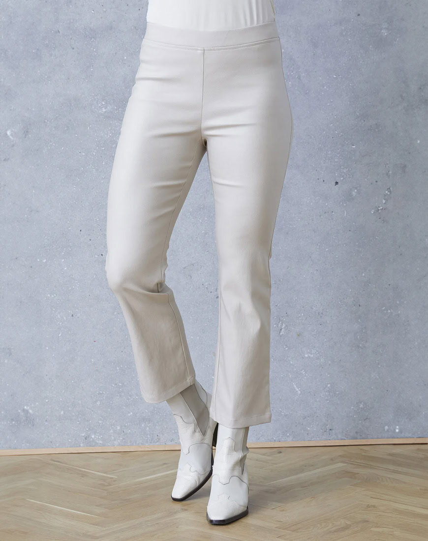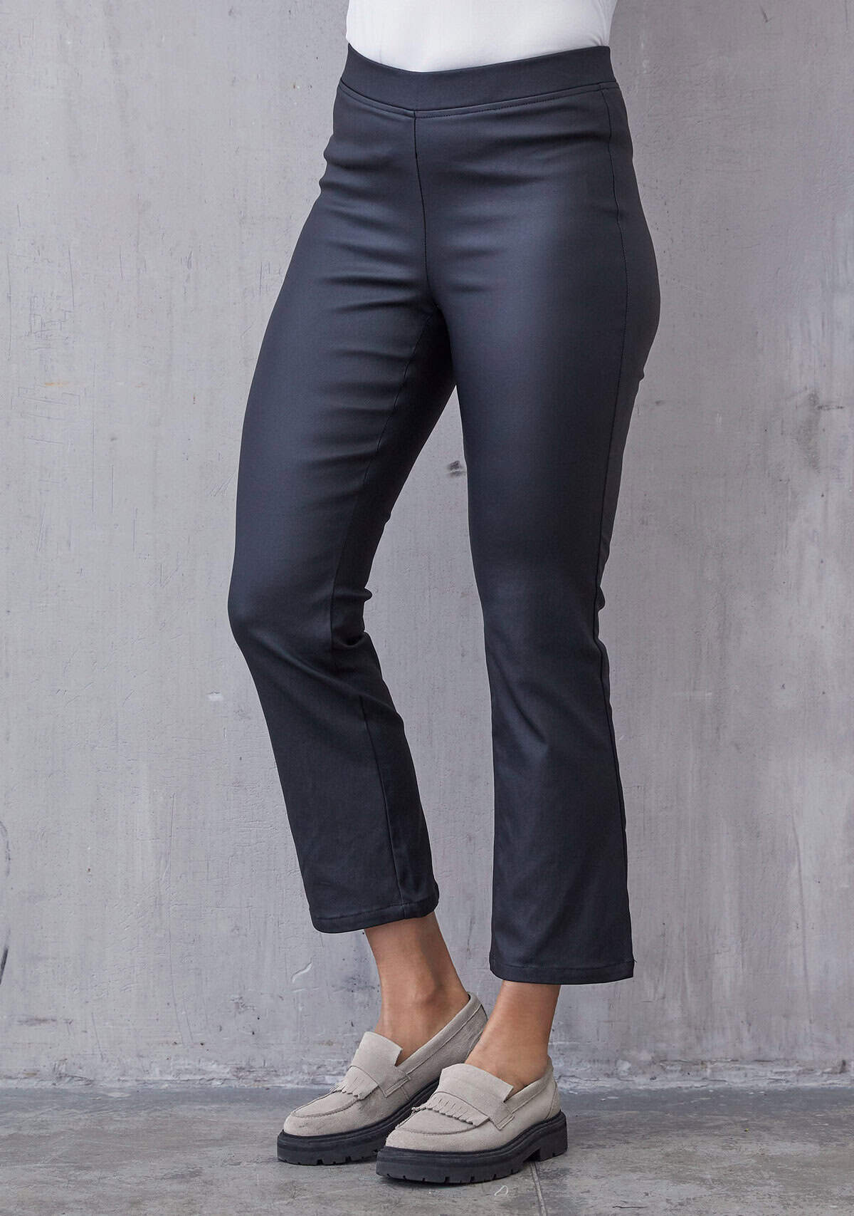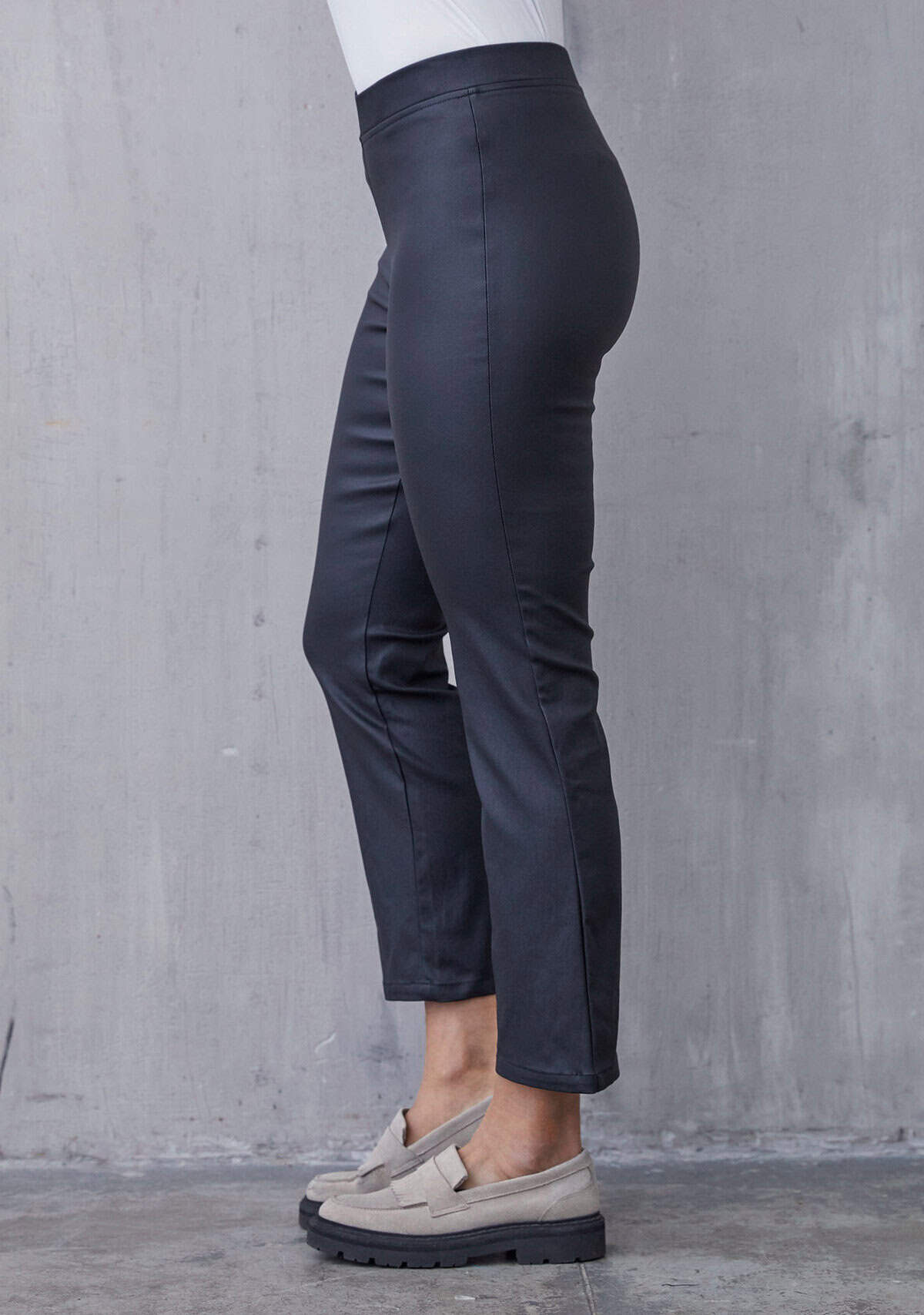 Helga Pant är en leggings med lätt utställda ben. Den har en "vaxad" yta och en bred elastisk midja som håller dem på plats.
