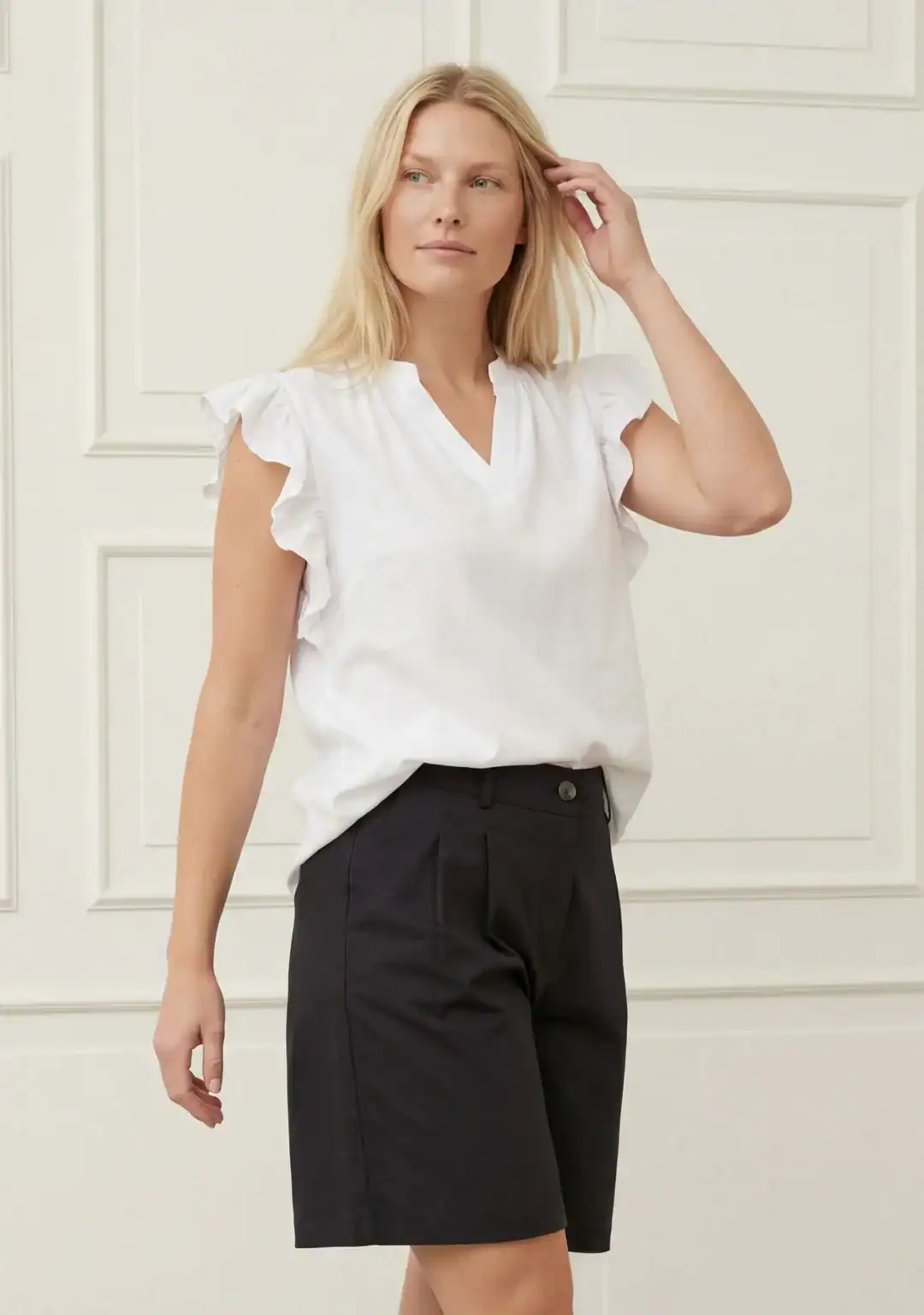 The Pearl Flounce Top is the epitome of summer. The type of top you put on a warm morning – and immediately feel light, well-dressed, and completely comfortable.