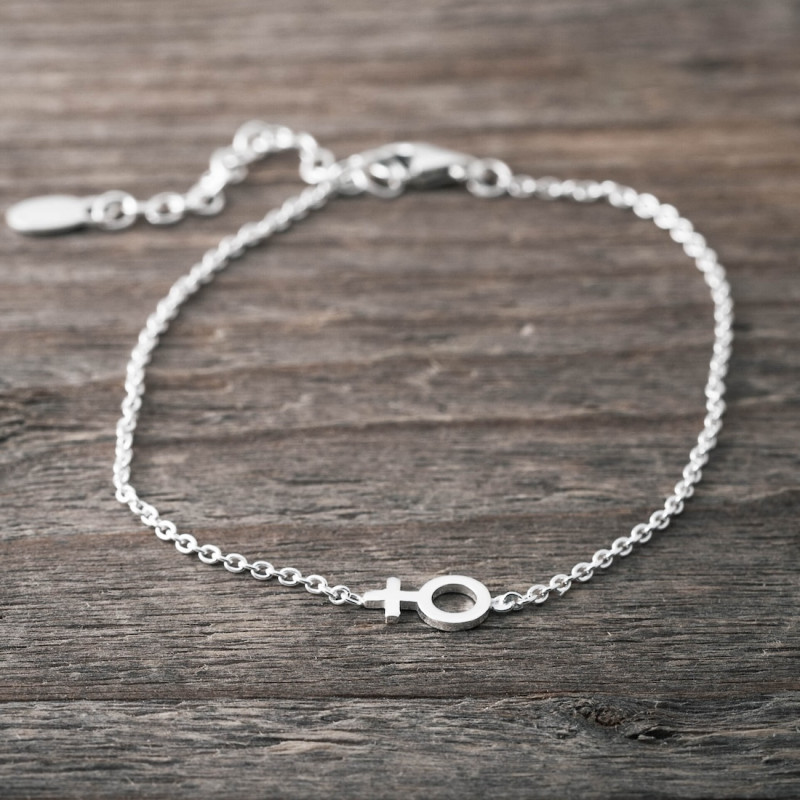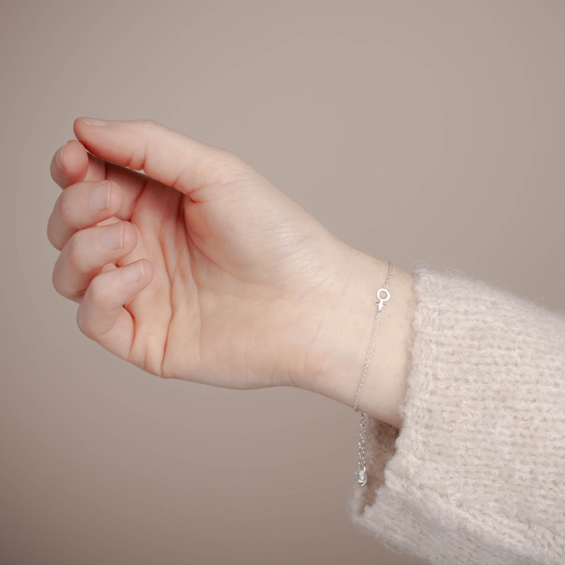Stilrent silverarmband med ett litet kvinnotecken. Läs mer