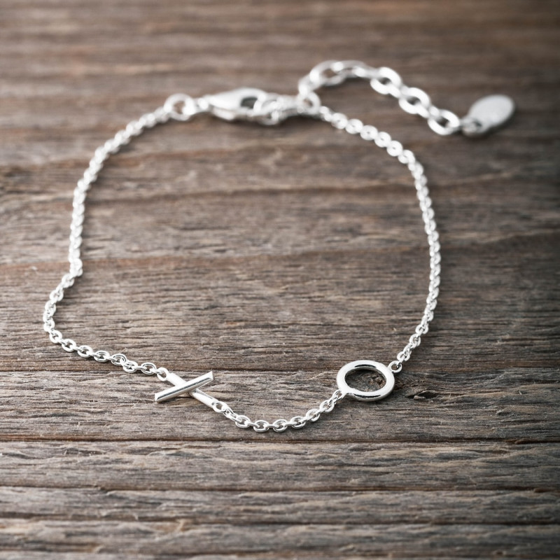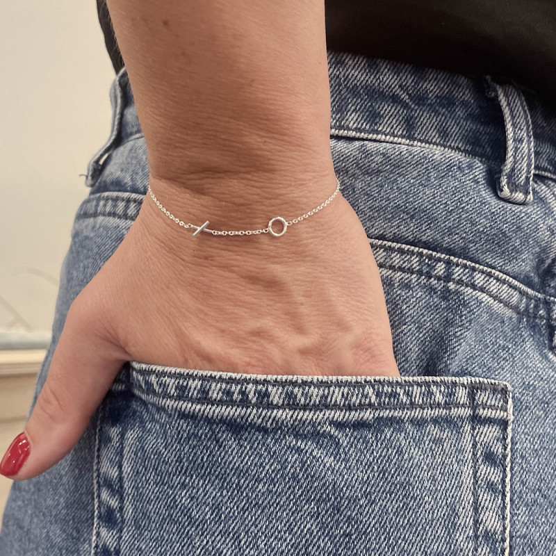 Stilrent silverarmband där symbolerna X & O (puss & kram) sitter diskret i kedjan. Läs mer