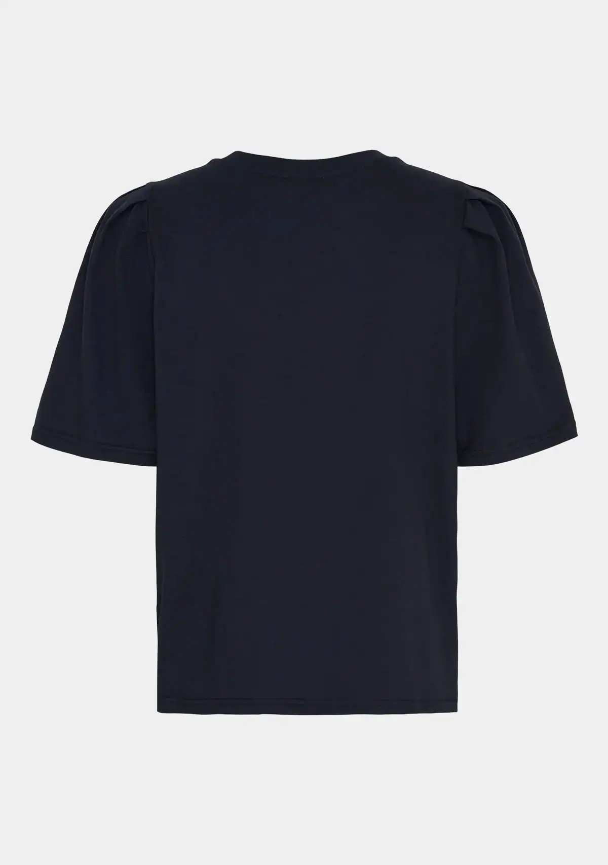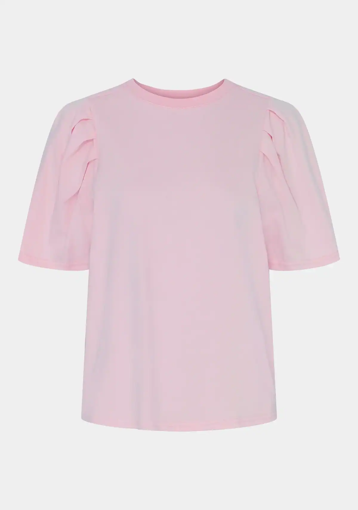 Tinni s/s T-shirt är en feminin t-shirt med korta puffärmar. T-shirten är designad i en ultramjuk, tjock bomullskvalitet med rund hals och en liten sprund i varje sida. Tinni s/s T-shirt är ett måste i din kapselgarderob så att du alltid har en bas-t-shirt med fantastisk passform och bekväm kvalitet. Den kan stylas med allt i din garderob, men är särskilt fin till ett par denimjeans för en avslappnad vardagslook eller en lång kjol för att ge din festoutfit mer karaktär.